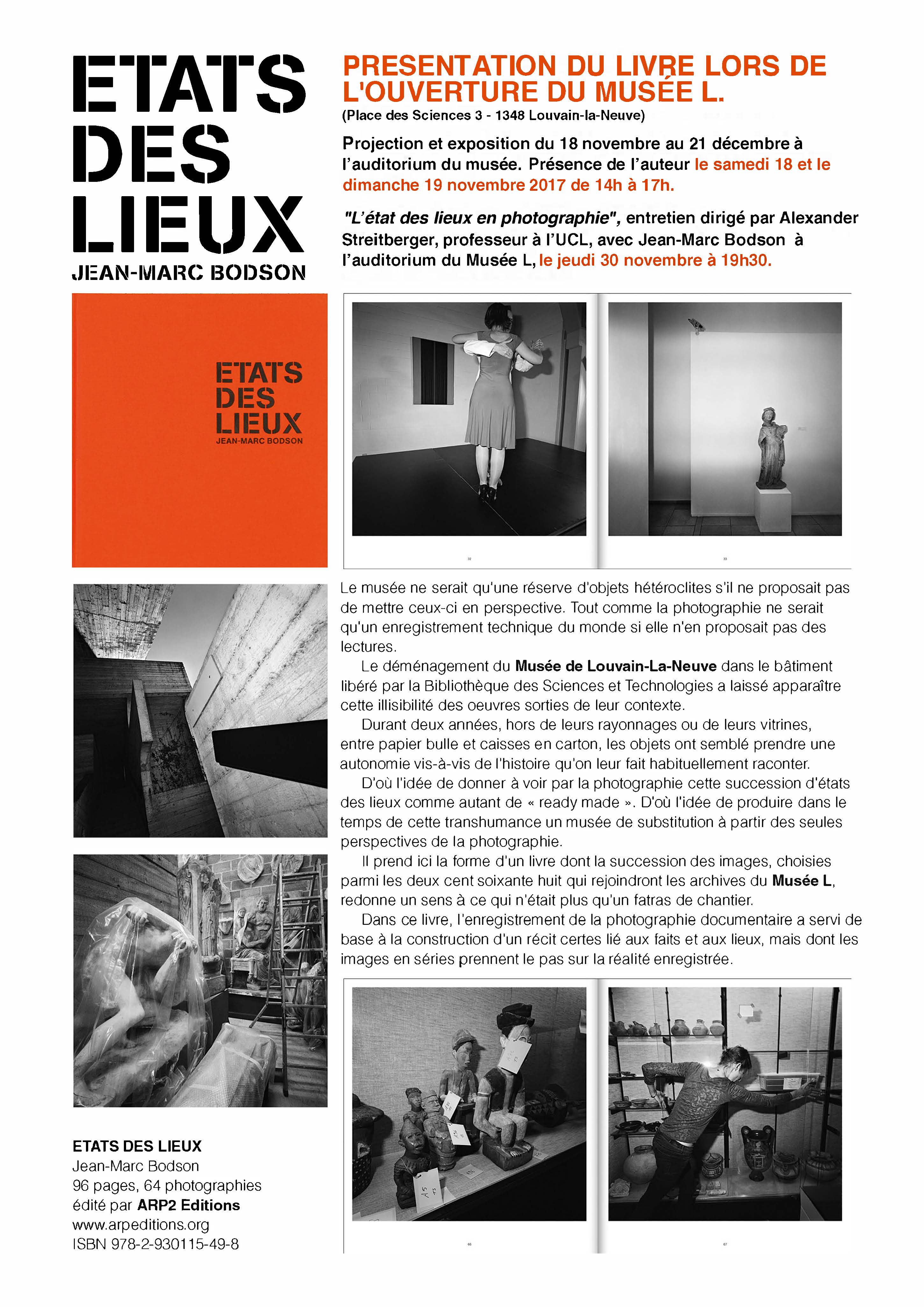 Durant deux ans, Jean-Marc Bodson a réalisé un reportage photographique portant sur le déménagement des œuvres de l’ancien musée et sur les travaux d’aménagement du nouveau Musée L. Durant deux années, hors de leurs rayonnages ou de leurs vitrines, entre papier bulle et caisses en carton, les objets ont pris une autonomie et racontent une histoire singulière. D’où cette idée de donner à voir par la photographie cette succession d’états des lieux comme autant de ready made.