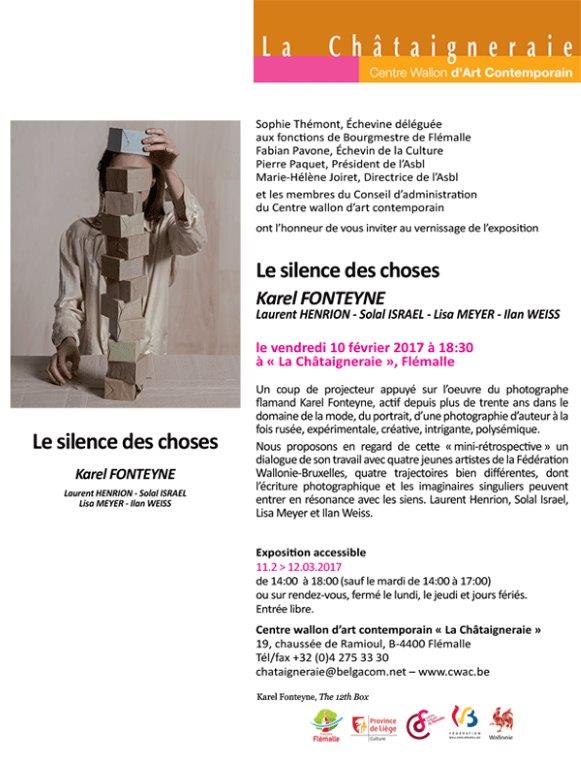 A l'occasion de la rétrospective consacrée au photographe Karel Fonteyne, La Châteigneraie propose de découvir une mise en dialogue de son travail avec quatre jeunes artistes belges : Lisa Meyer, Ilan Weiss, Laurent Henrion et Solal Israel, ancien étudiant du 75.