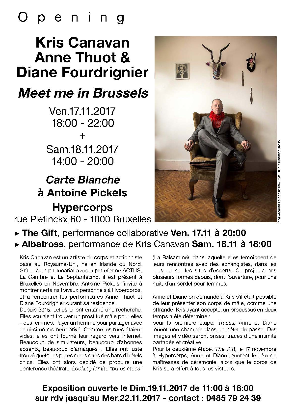 L'atelier Peinture du 75 a accueilli l'artiste performeur irlandais Kris Canavan dans le cadre d'Actus, le festival de l'action, qui a eu lieu au MAAC du 10 au 11 novembre 2017.