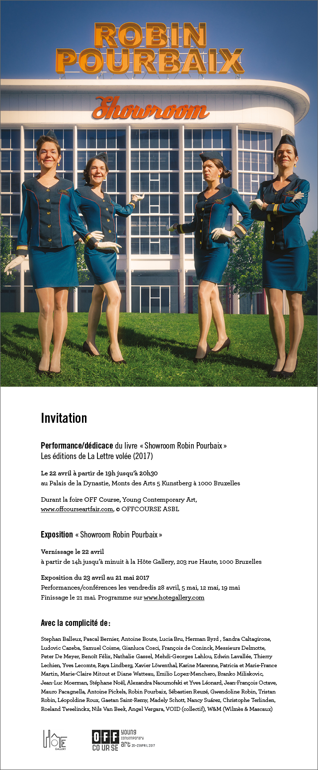 Performance/dédicace du livre « Showroom Robin Pourbaix » (Les éditions de La Lettre volée, 2017) :