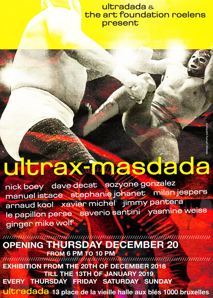 Exposition collective avec : Nick Boey, Dave Decat, Sozyone Gonzalez, Manuel Istace, Stephanie Johanet, Milan Jespers, Arnaud Kool, Xavier Michel, le papillon perse, Saverio Santini, Yasmine Weiss, Ginger Mike Wolf et Jimmy Pantera, professeur de graphisme à l'ESA LE 75.