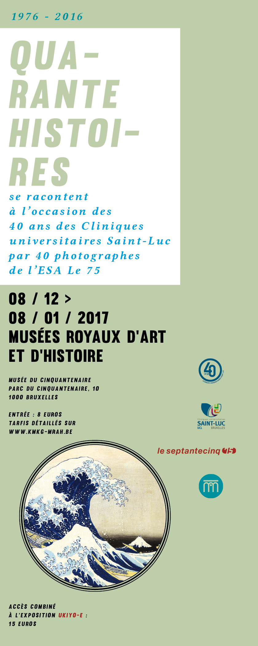 Cette exposition exceptionnelle offre une plongée dans l'univers hospitalier au travers 40 portraits photographiques de membres du personnel des Cliniques universitaires Saint-Luc réalisés par 40 photographes de l'ESA LE 75.