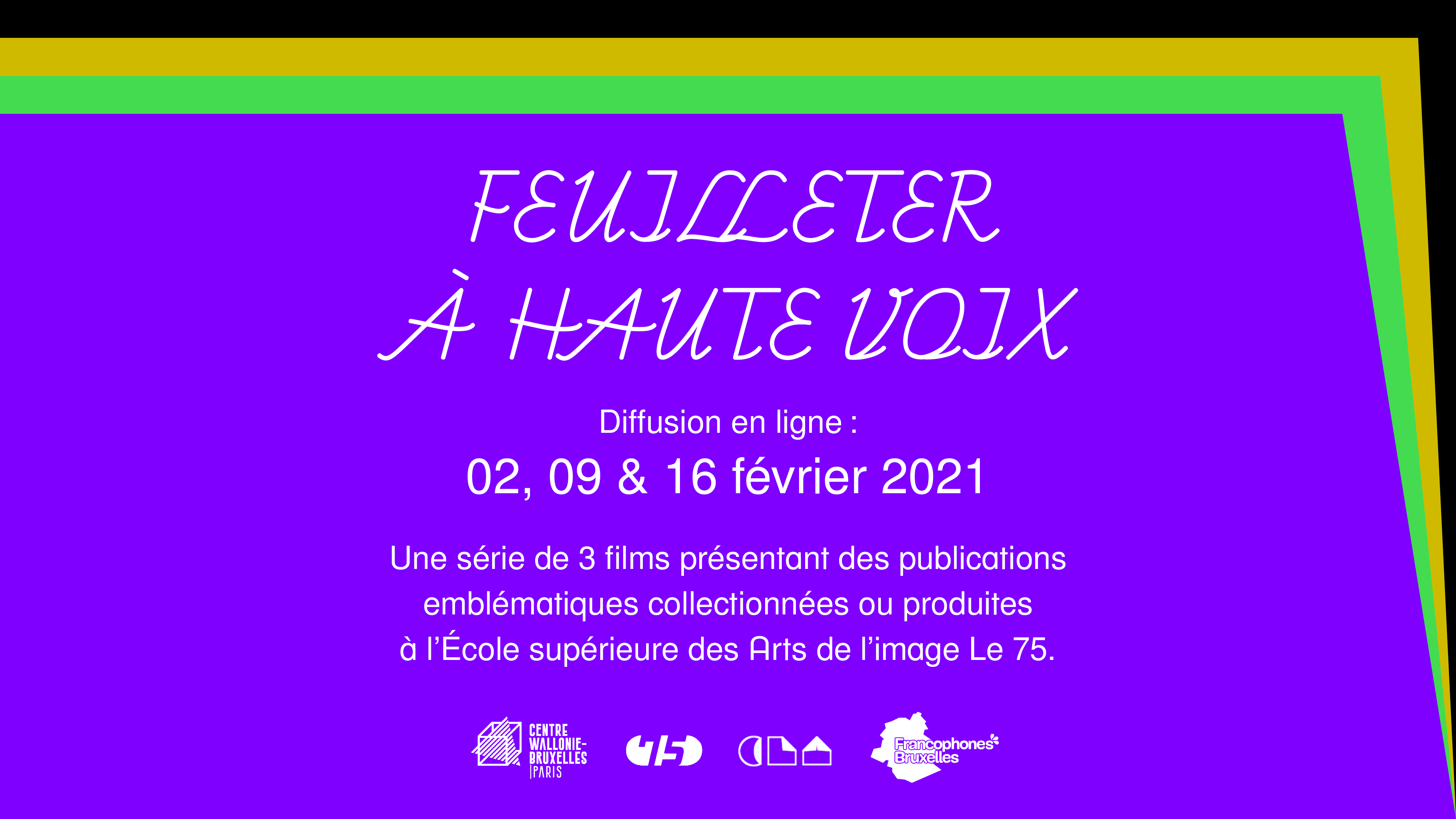 LE 75 répond à une Carte Blanche proposée par le Centre Wallonie-Bruxelles Paris en projetant en ligne "Feuilleter à haute voix", une série de 3 films présentant des publications emblématiques collectionnées ou produites au 75.