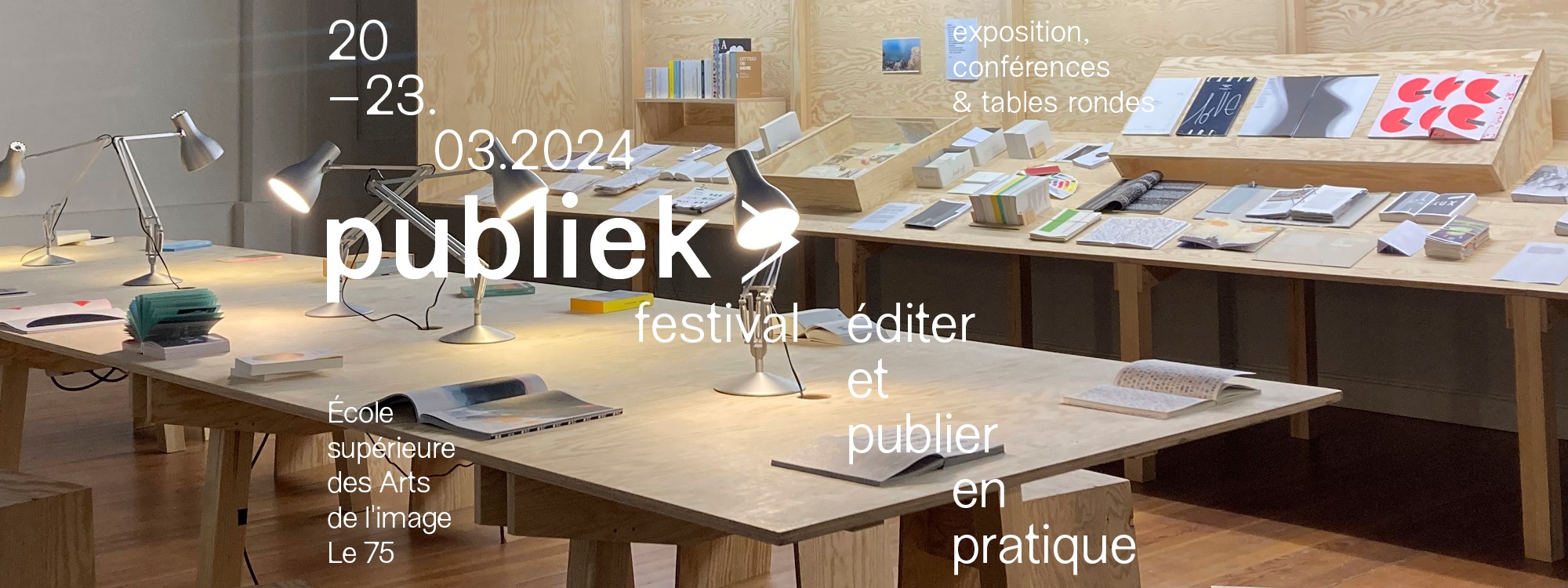 publiek< éditer et publier en pratique est un festival d’expérimentation et de recherche autour de l’édition, organisé par l’École Supérieure des Arts de l’image Le 75.